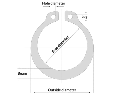 After installation, the visible segment serves as a retaining shoulder for the designated component or assembly. Carbon spring steel is commonly used for the majority of circlip and retaining ring manufacture.